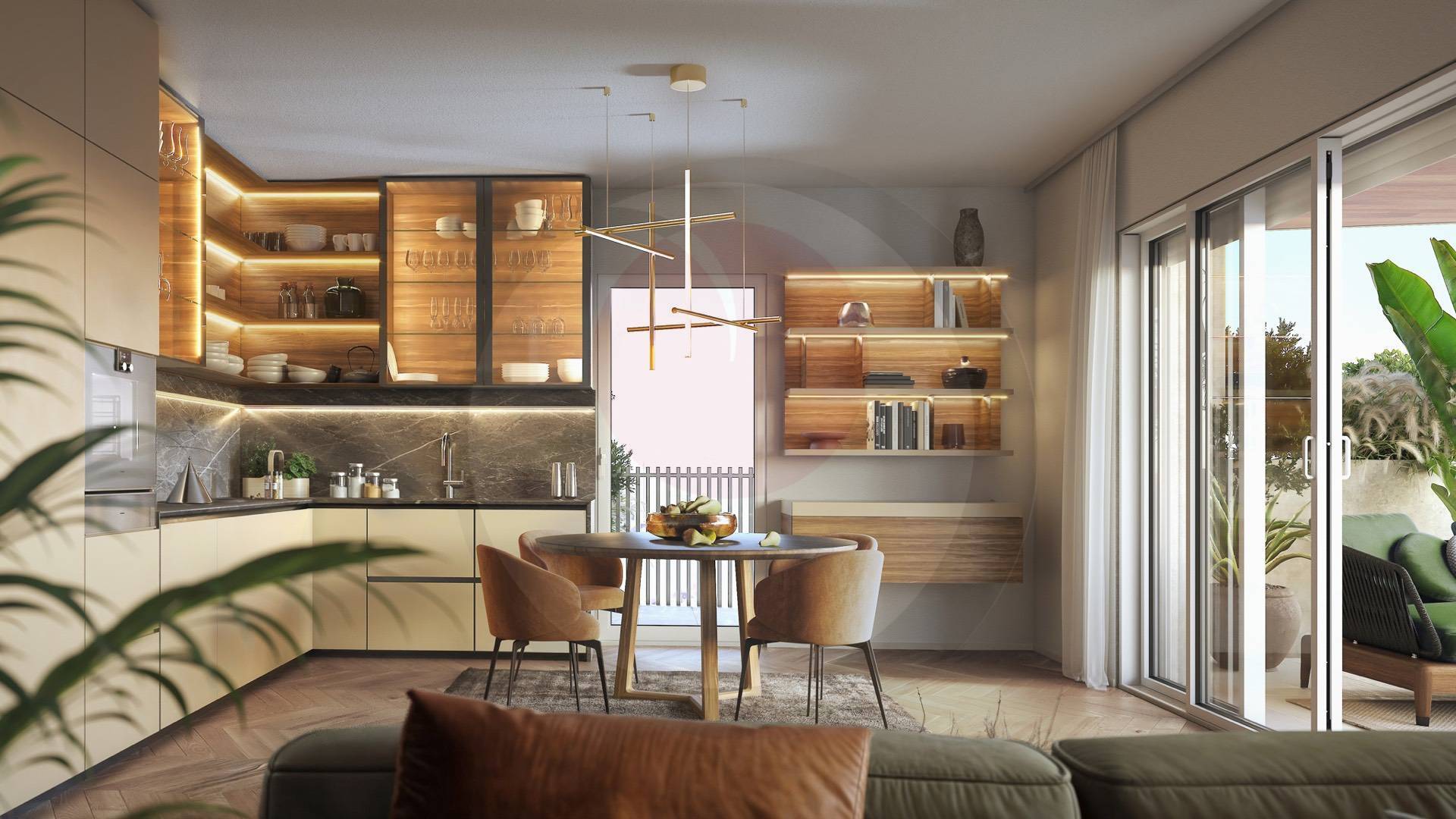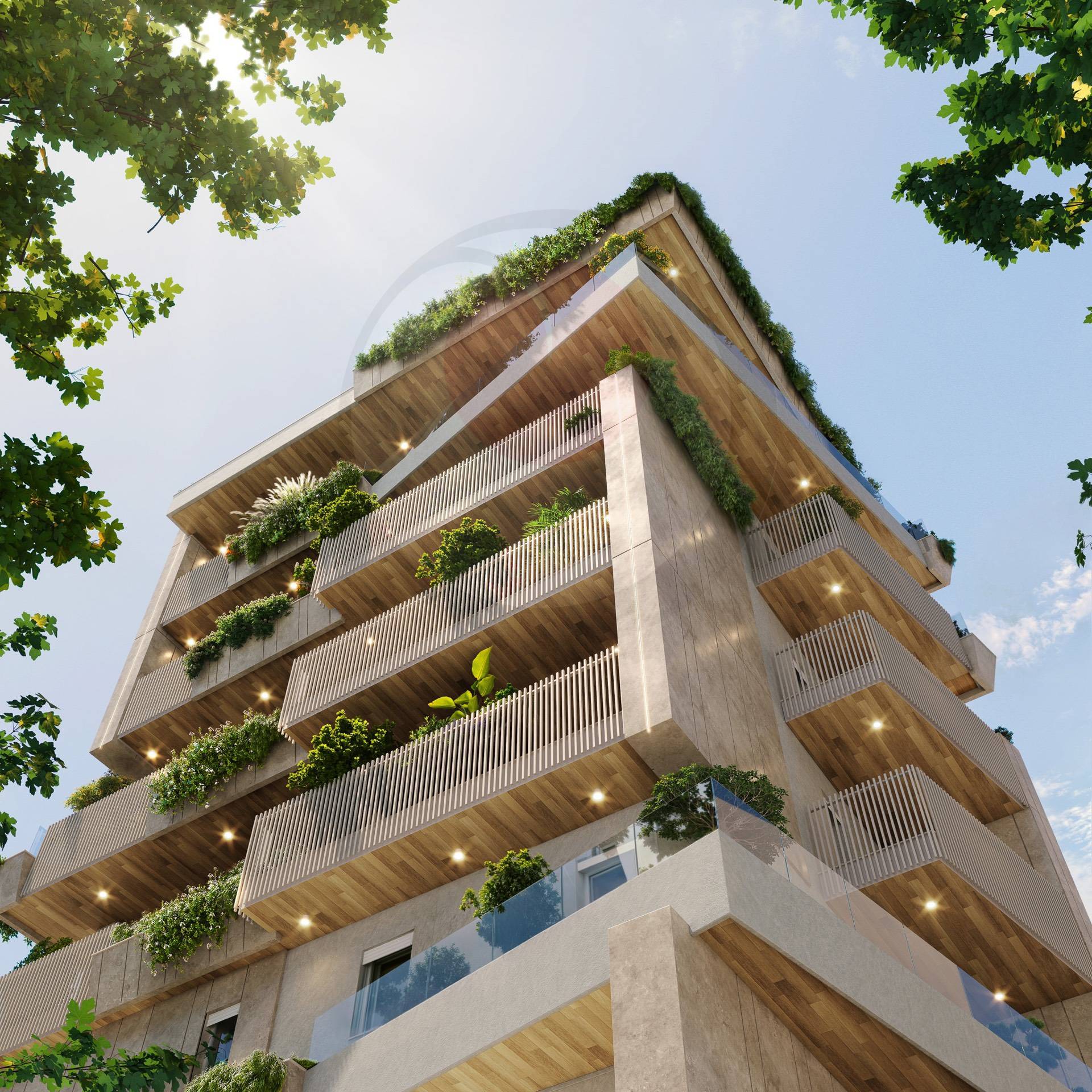Una perfetta sintesi tra architettura contemporanea e sostenibilità ambientale, che si distingue per l'integrazione di verde e luce all'interno dello spazio abitativo urbano. Qui eleganti inserti luminosi, fioriere, piante rigogliose e giardini verticali divengono espressione di un'architettura che respira natura, simbolo di contemporaneità e sostenibilità: dimensione ideale per chi cerca un'abitazione distintiva e in equilibrio con l'ambiente.