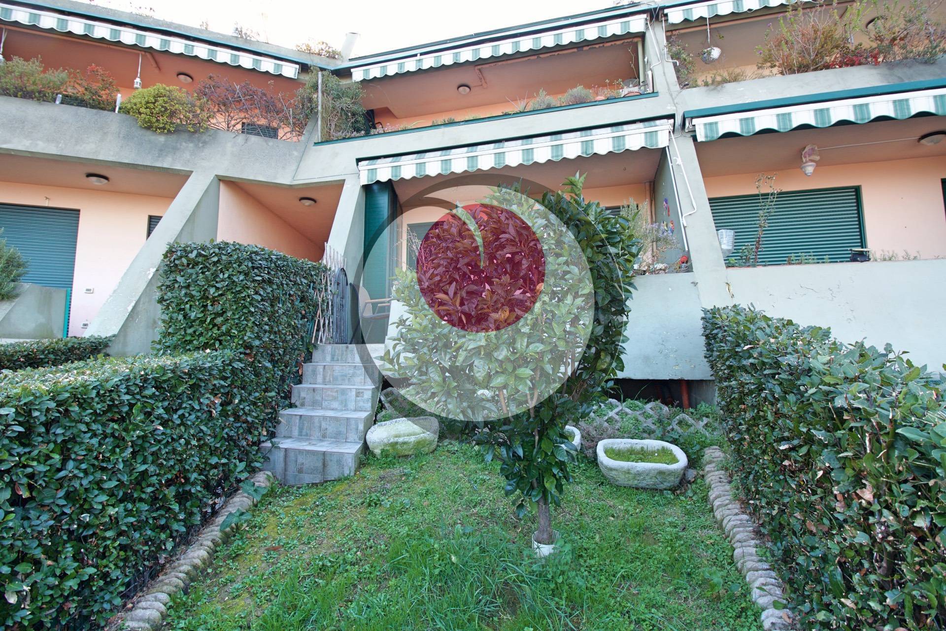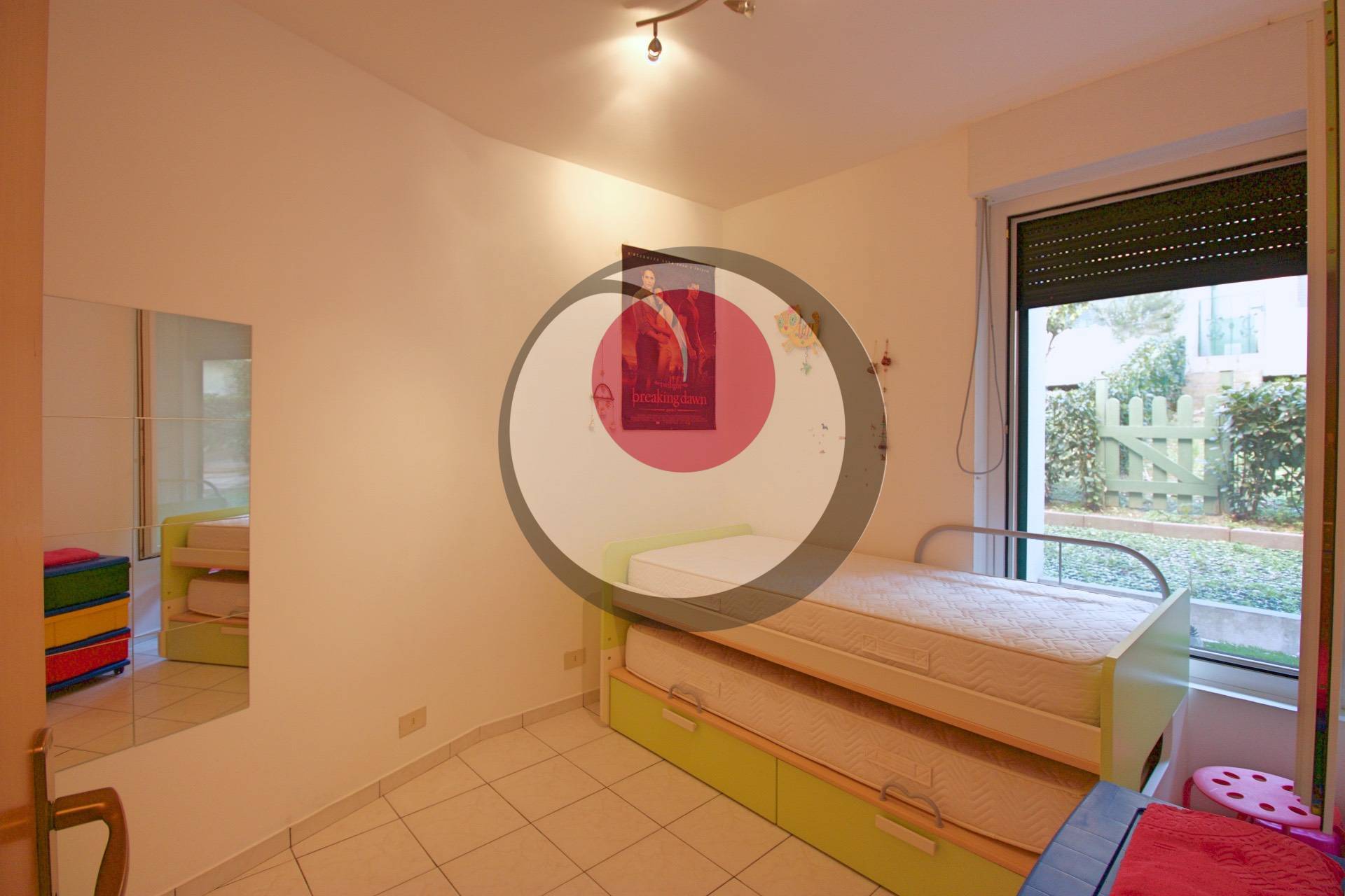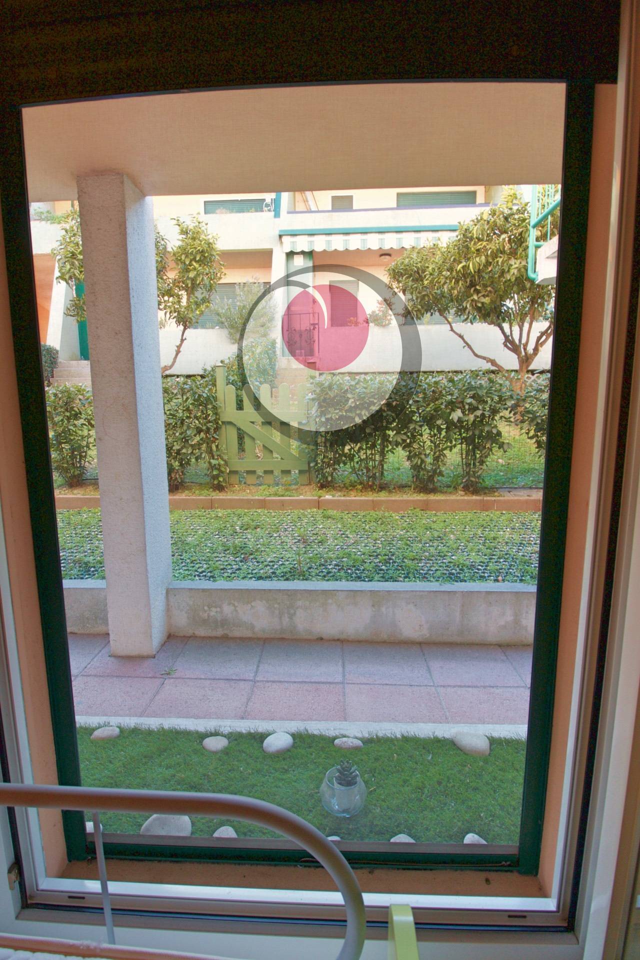Ingresso su soggiorno con cucina a vista e affaccio su terrazzo comunicante con giardinetto di proprietà. Attraverso un piccolo disimpegno, si raggiunge invece la zona notte comprensiva di camera matrimoniale, camera singola e servizio con box doccia. Nel complesso è presente un'ampia piscina, con libero accesso per i residenti, a cui poter accedere direttamente dalla propria abitazione.